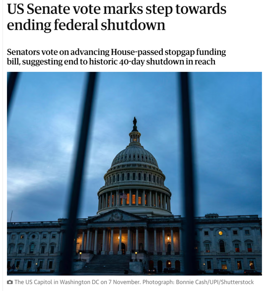 这意味着,参院终于按下了解锁按钮,为这场10月1日起至今持续40余天、创下历史纪录的联邦政府“停摆”提供了可见的解决路径。