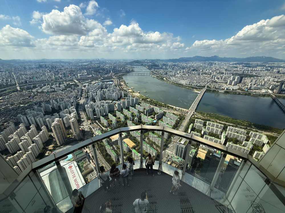 9月5日,游客在首尔的乐天世界塔高层展望台拍照。新华社发(全休相摄)